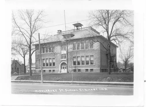 The school was built and opened in October 1905 by the Elkhart School Board on the site of an old cemetery that had been used until about 1895;the graves and headstones were moved to what is now Grace Lawn Cemetery before construction.