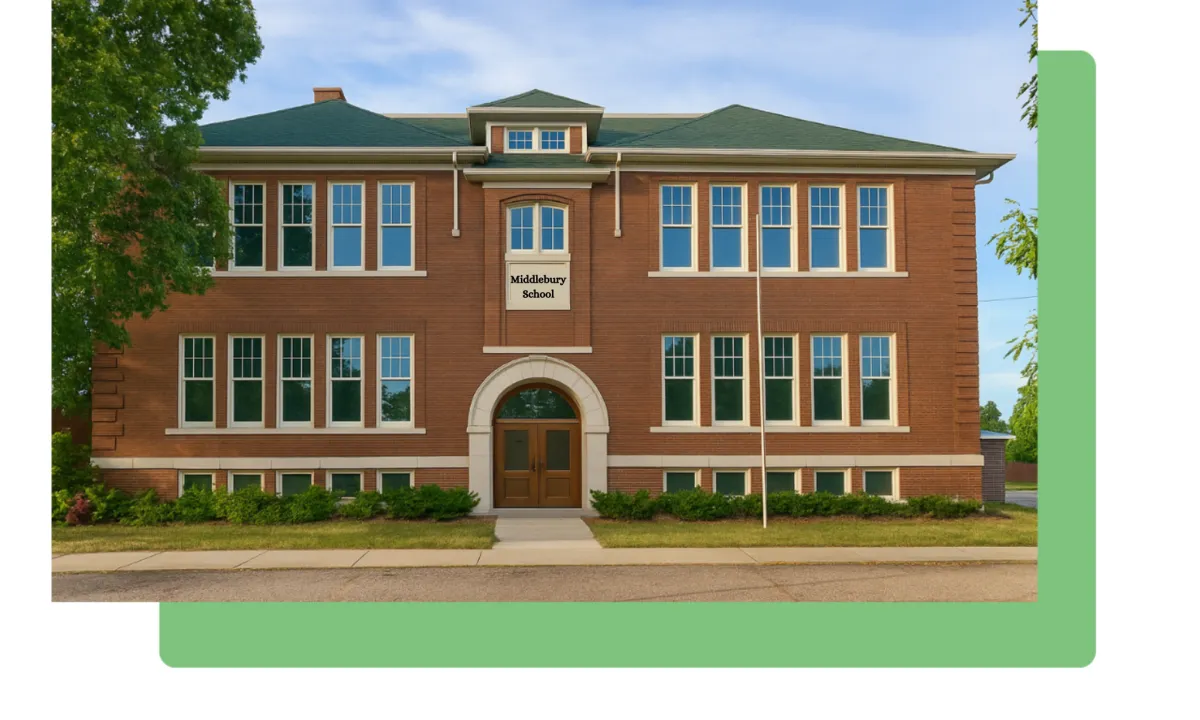 This conversion will create 16 modern one and two bedroom apartments within the restored structure of the Old Middlebury School, blending contemporary living standards with the building's architectural heritage.